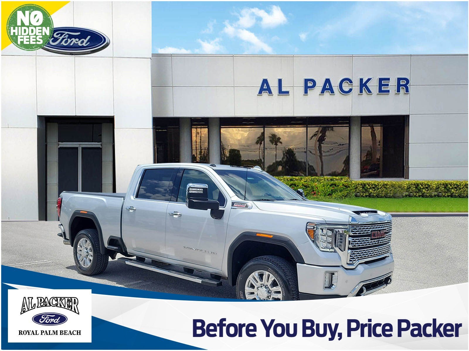 Text a manager directly at 844-601-4834 and remember Before You Buy...PRICE PACKER!!CARFAX One-Owner. Clean CARFAX.Bluetooth®, REAR BACK UP CAMERA, LEATHER SEATING, 172 POINT CERTIFIED INSPECTION, BLIND SPOT MONORTING, LANE DEPARTURE WARNING, FRESH OIL CHANGE, SAFETY INSPECTION, Sierra 3500HD Denali, 4D Crew Cab, Duramax 6.6L V8 Turbodiesel, 10-Speed Automatic, 4WD, Quicksilver Metallic, Jet Black Leather, 12-Volt Rear Auxiliary Power Outlet, 120-Volt Bed Mounted Power Outlet, 120-Volt Instrument Panel Power Outlet, 2 USB Ports (First Row), 2 USB Ports Inside Console, 2-Speed Active Transfer Case, 2nd Row Dual USB Charge-Only Ports, 6 Rectangular Chromed Tubular Assist Steps, Automatic Emergency Braking, Bed View Camera w/2 Trailer Camera Provisions, Compass Located In Instrument Cluster, Deep-Tinted Glass, Denali Ultimate Package, Driver Alert Package I, Driver Alert Package II, Electric Rear-Window Defogger, Electrical Lock Control Steering Column, Floor-Mounted Center Console, Following Distance Indicator, Forward Collision Alert, Front Chrome Recovery Hooks, GMC Connected Access Capable, HD Rear Vision Camera, HD Surround Vision w/2 Trailer View Camera Provisions, Heated Driver & Front Outboard Passenger Seats, Integrated Trailer Brake Controller, IntelliBeam Automatic High Beam On/Off, Keyless Open & Start, Lane Change Alert w/Side Blind Zone Alert, Lane Departure Warning System, LED Cargo Area Lighting, Manual Tilt-Wheel/Telescoping Steering Column, Navigation System, OnStar & GMC Connected Services Capable, Polished Exhaust Tip, Power Door Locks, Power Front Passenger Windows w/Express Up/Down, Power Front Windows w/Driver Express Up/Down, Power Rear Windows w/Express Down, Power Sliding Rear Window w/Defogger, Power Sunroof, Preferred Equipment Group 5SA, ProGrade Trailering System, Rear Cross Traffic Alert, Rear Wheelhouse Liners, Remote Vehicle Starter System, Safety Alert Seat, Signature Denali Grille w/High Gloss Black Mesh, Spray-On Pickup Bed Liner w/Denali Logo, Steering Wheel Audio Controls, Technology Package, Unauthorized Entry Theft-Deterrent System, Universal Home Remote, Ventilated Driver & Front Passenger Seats, Wi-Fi Hotspot Capable, Wireless Charging, Wireless Phone Projection, X31 Off-Road Package. 2022 GMC Quicksilver Metallic Sierra 3500HD Duramax 6.6L V8 Turbodiesel 4WD Denali 10-Speed Automatic Certified. Certification Program Details: Ford Blue Advantage: Blue Certified* 139 Point Inspection* Transferable Warranty* Vehicle History* Warranty Deductible: $100* Roadside Assistance* Limited Warranty: 3 Month/4,000 Mile (whichever comes first) after new car warranty expires or from certified purchase date* and 11,000 FordPass Rewards Points to use toward first maintenance visitRecent Arrival!You find yourself asking, Where is there a new Ford dealer near me in Royal Palm Beach, FL, that also offers pre-owned vehicles? The answer is Al Packer Ford Royal Palm Beach, also serving Lake Worth, Wellington, West Palm Beach and Palm Beach Gardens.