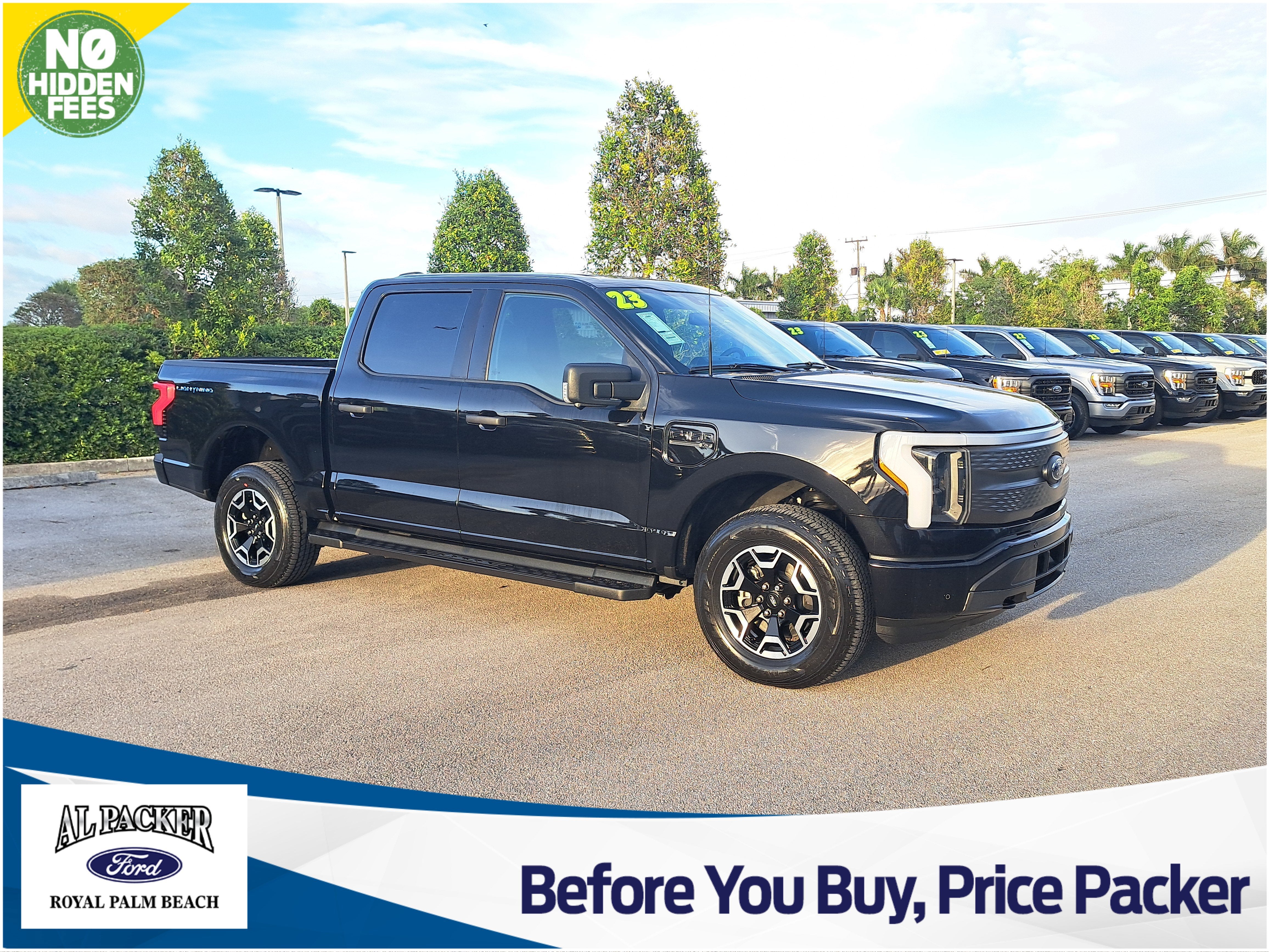 Text a manager directly at 844-601-4834 and remember Before You Buy...PRICE PACKER!!Bluetooth®, REAR BACK UP CAMERA, 172 POINT CERTIFIED INSPECTION, NAVIGATION, BLIND SPOT MONORTING, SAFETY INSPECTION, F-150 Lightning XLT, 4D Crew Cab, Electric Motor, Single-Speed Automatic, AWD, Agate Black Metallic, Medium Dark Slate w/Cloth Heated Front Seats, Equipment Group 311A Standard, Navigation System. 2023 Ford Agate Black Metallic F-150 Lightning Electric Motor AWD XLT Single-Speed Automatic Certified. Certification Program Details: Ford Blue Advantage: Blue Certified* 139 Point Inspection* Transferable Warranty* Vehicle History* Warranty Deductible: $100* Roadside Assistance* Limited Warranty: 3 Month/4,000 Mile (whichever comes first) after new car warranty expires or from certified purchase date* and 11,000 FordPass Rewards Points to use toward first maintenance visit76/61 City/Highway MPG Odometer is 10274 miles below market average!You find yourself asking, Where is there a new Ford dealer near me in Royal Palm Beach, FL, that also offers pre-owned vehicles? The answer is Al Packer Ford Royal Palm Beach, also serving Lake Worth, Wellington, West Palm Beach and Palm Beach Gardens.