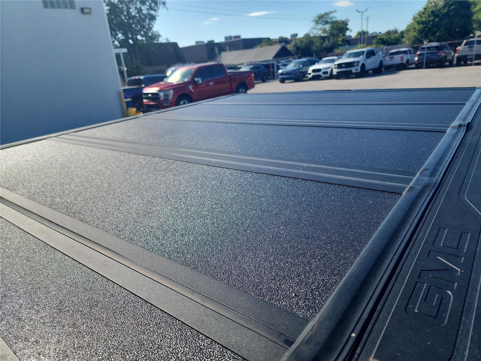 - Bed Liner, Spray-on, Pickup bedliner with GMC logo (does not include spray-on liner on tailgate due to Black composite inner panel) (Denali logo replaces GMC logo. Not available with any Ship Thrus EXCEPT (VSH), (VTV), (TCH) or (TCE).)